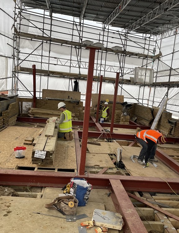 One of the client’s key requirements was to avoid any piers or columns in the main hall area on the ground floor. To achieve this, we designed a floating mezzanine floor supported by full storey-height transfer trusses spanning approximately 12 meters between the main load-bearing walls. As part of our design, we also strengthened the existing main roof structure. This approach enabled significant cost savings for the client and reduced construction waste.